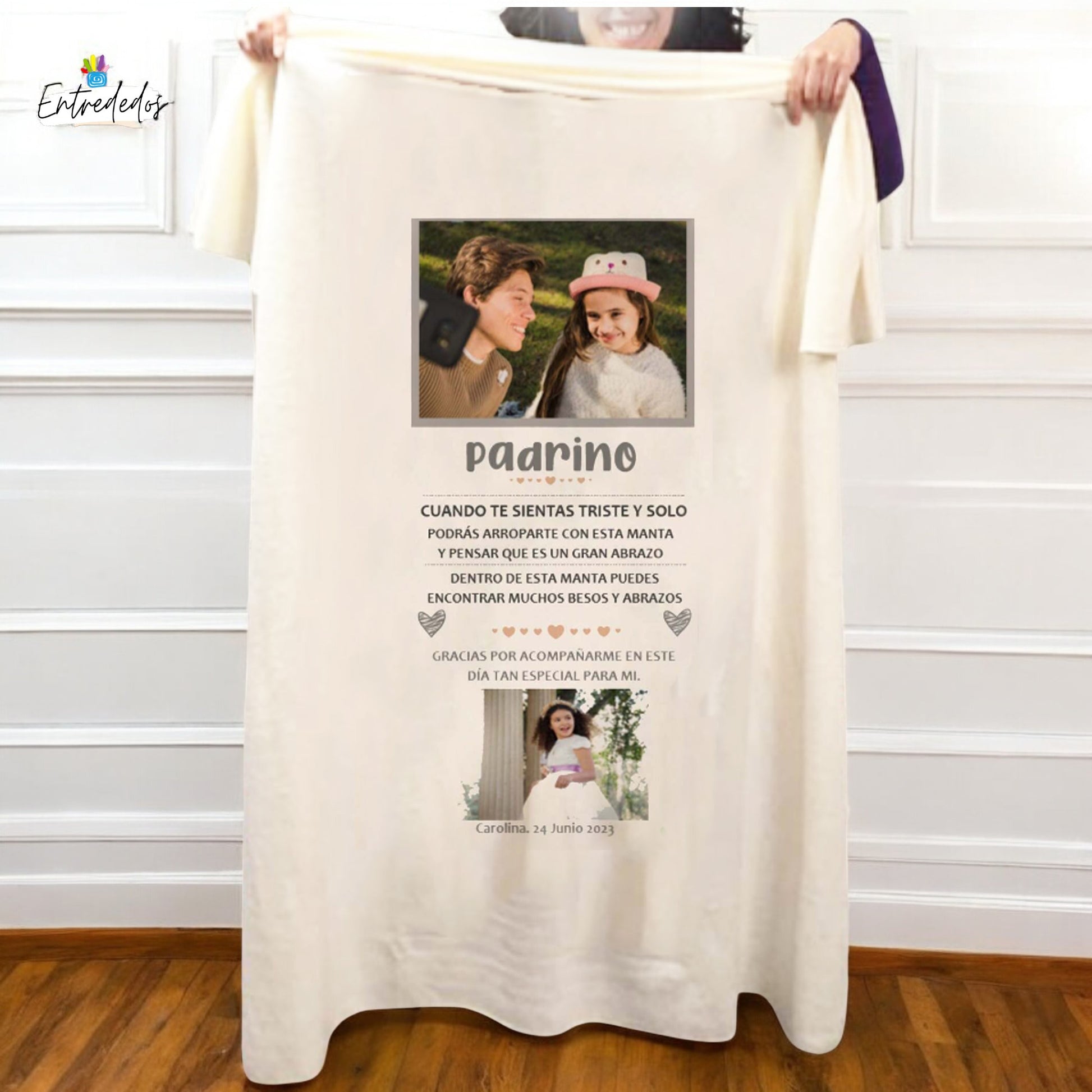 Sorprende a tu padrino o madrina con una manta personalizada llena de cariño y gratitud. Suave, cálida y ligera, perfecta para acompañarlos en momentos de descanso.