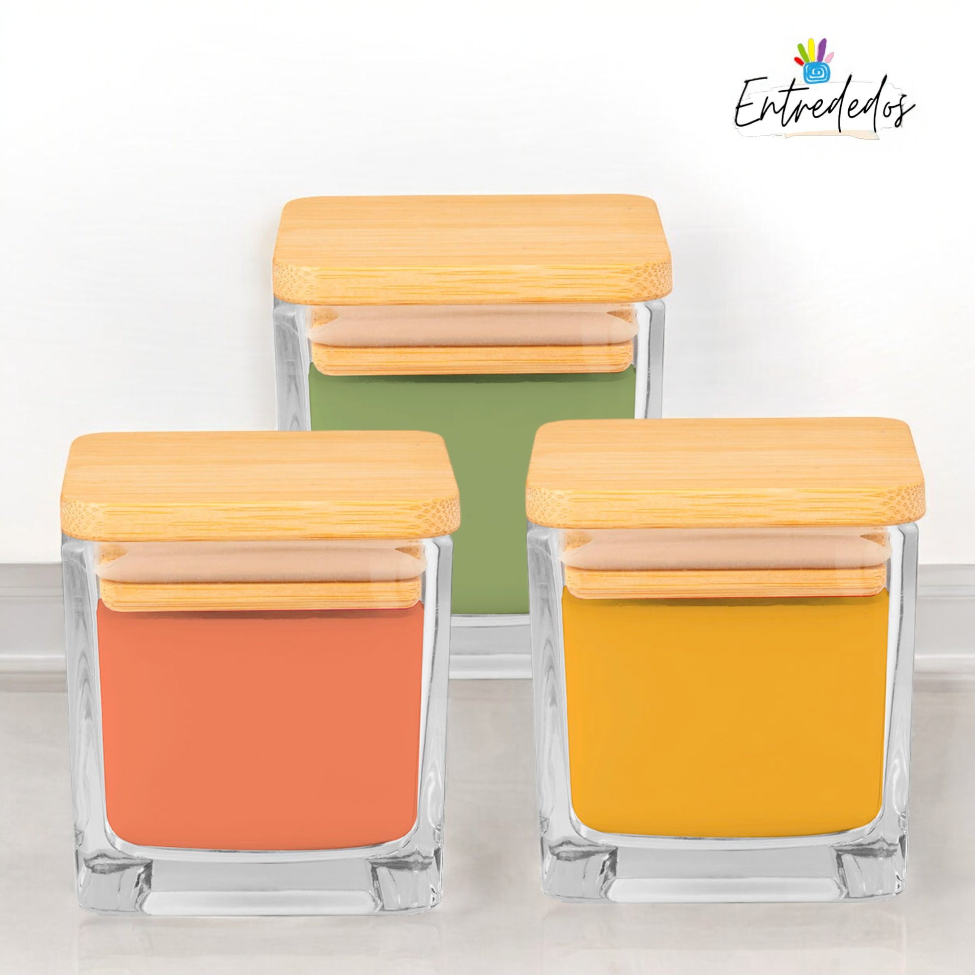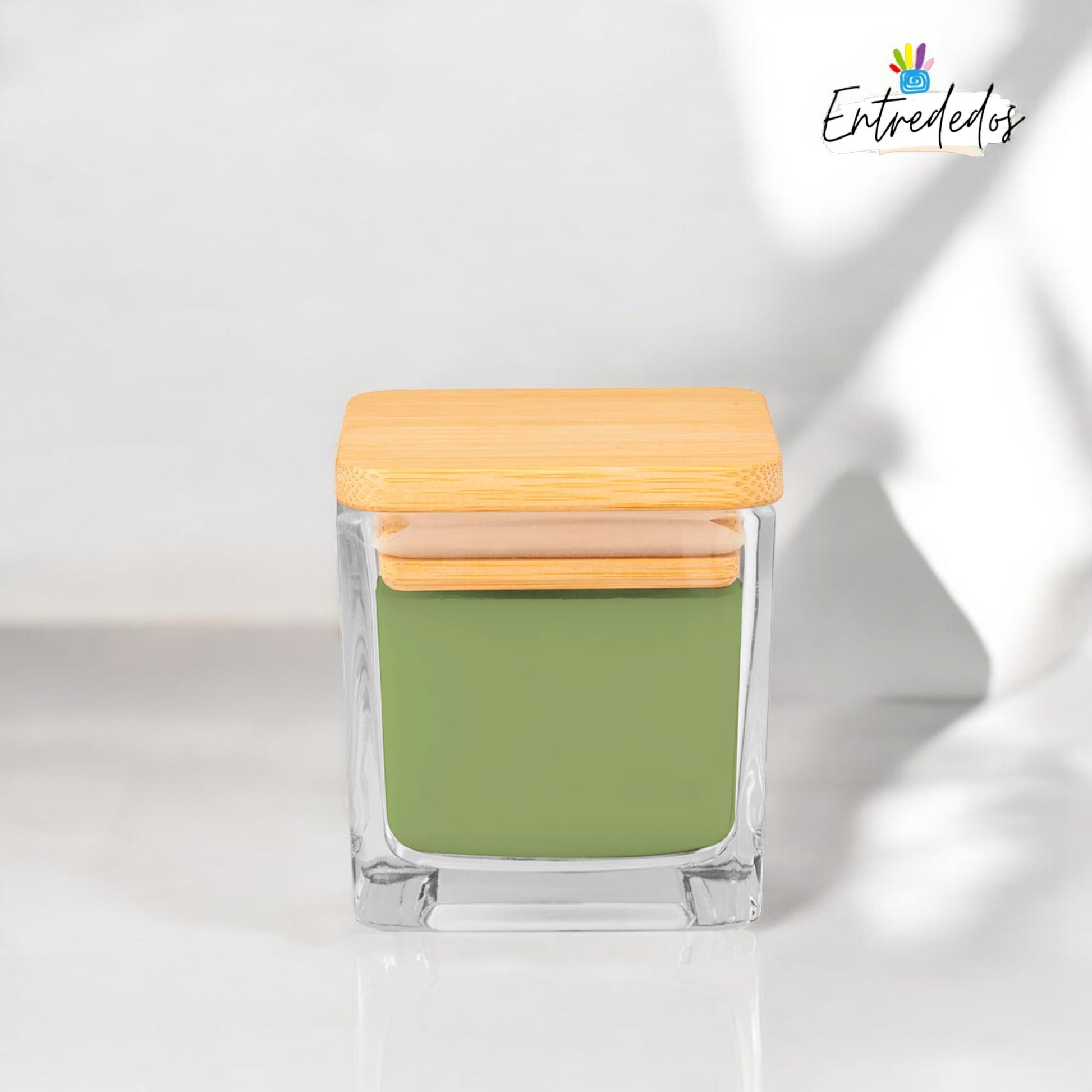 Vela aromática en tarro de cristal transparente, de forma cuadrada y con tapadera de bambú, disponible en olores surtidos: