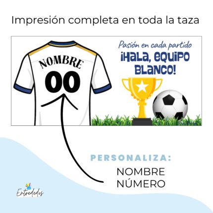 Taza de fútbol personalizada con colores deportivos Barcelona