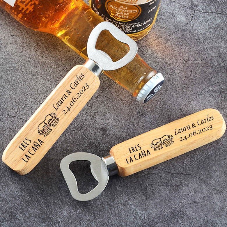 🍻 Abridor Personalizado en Madera de Haya y Acero Inoxidable