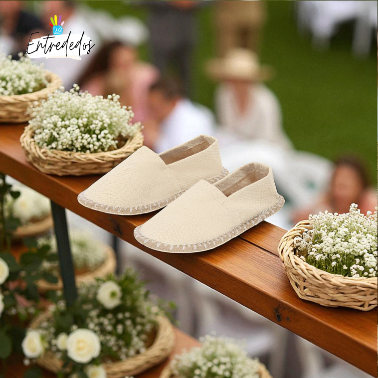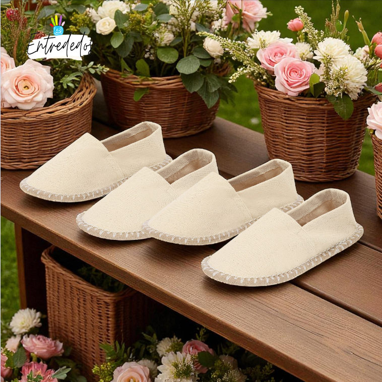 Sorprende a tus invitadas con un detalle práctico y elegante: nuestras alpargatas de algodón, perfectas para que disfruten cómodamente durante toda la celebración. 🌿