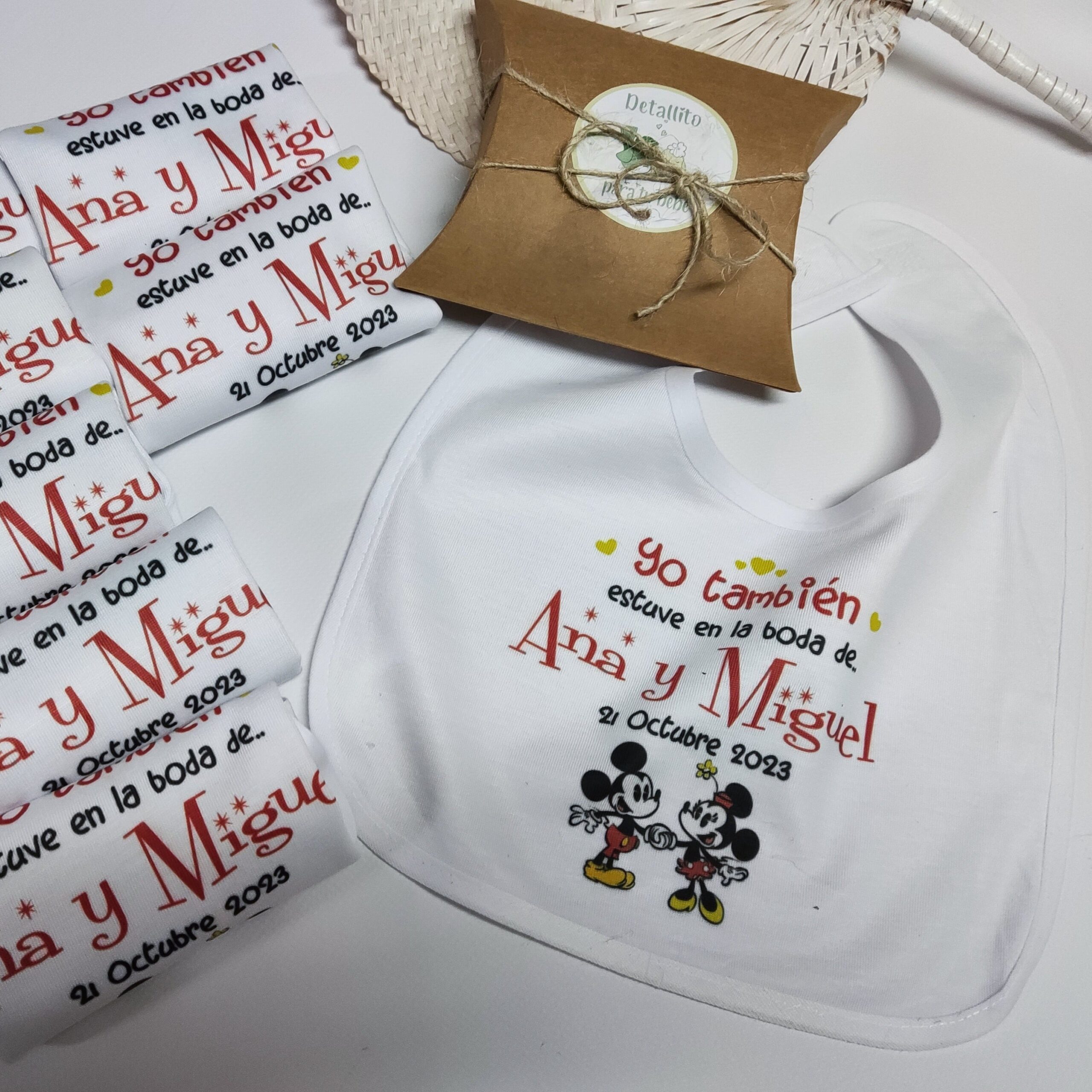 • Los textos de los baberos no se pueden modificar solo podemos añadir los nombres de los novios o de los bebes
