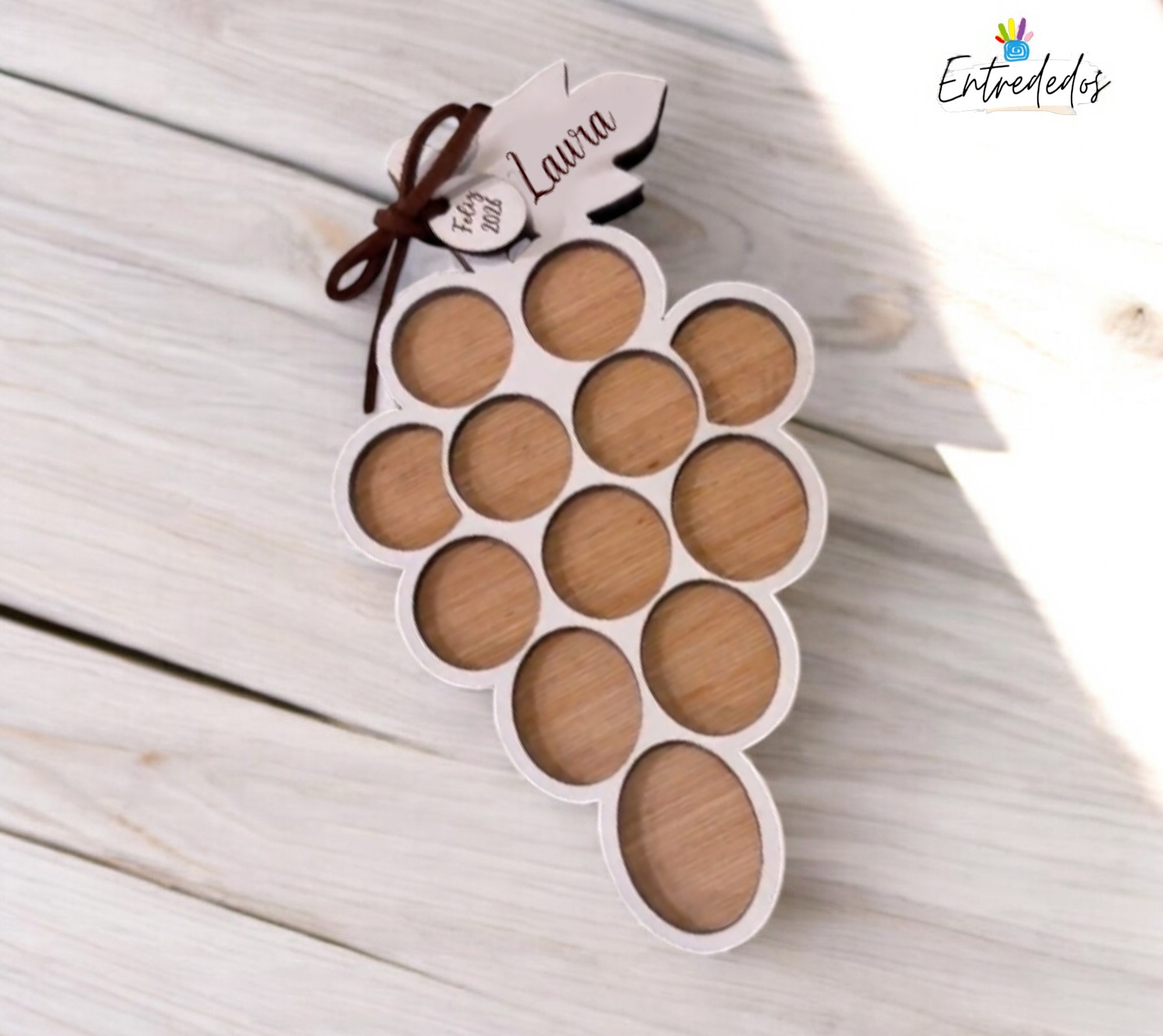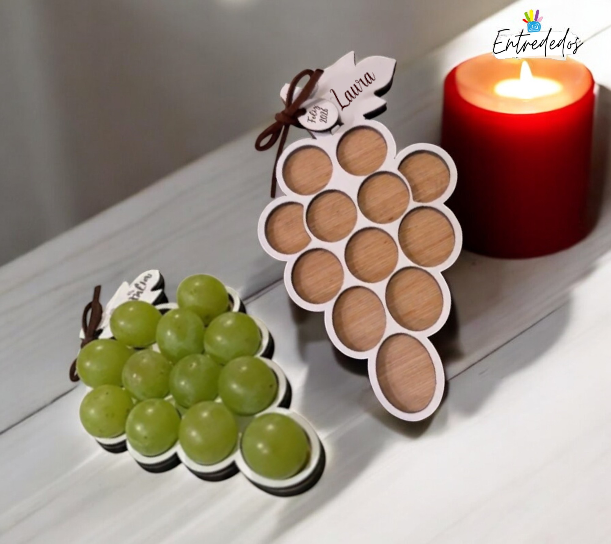 Celebra la llegada del Año Nuevo con nuestra bandeja de las uvas personalizada, un detalle original y especial para compartir en Nochevieja ✨. Diseñada para presentar las doce uvas de la suerte de forma elegante, esta bandeja se personaliza con nombres, fecha o un mensaje especial, convirtiéndose en un recuerdo único para cada familia 💖.