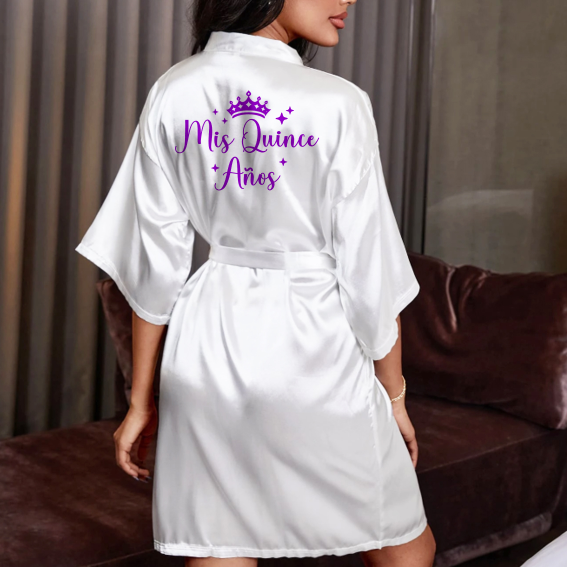 Bata de satén personalizada para “15 CUMPLEAÑOS”