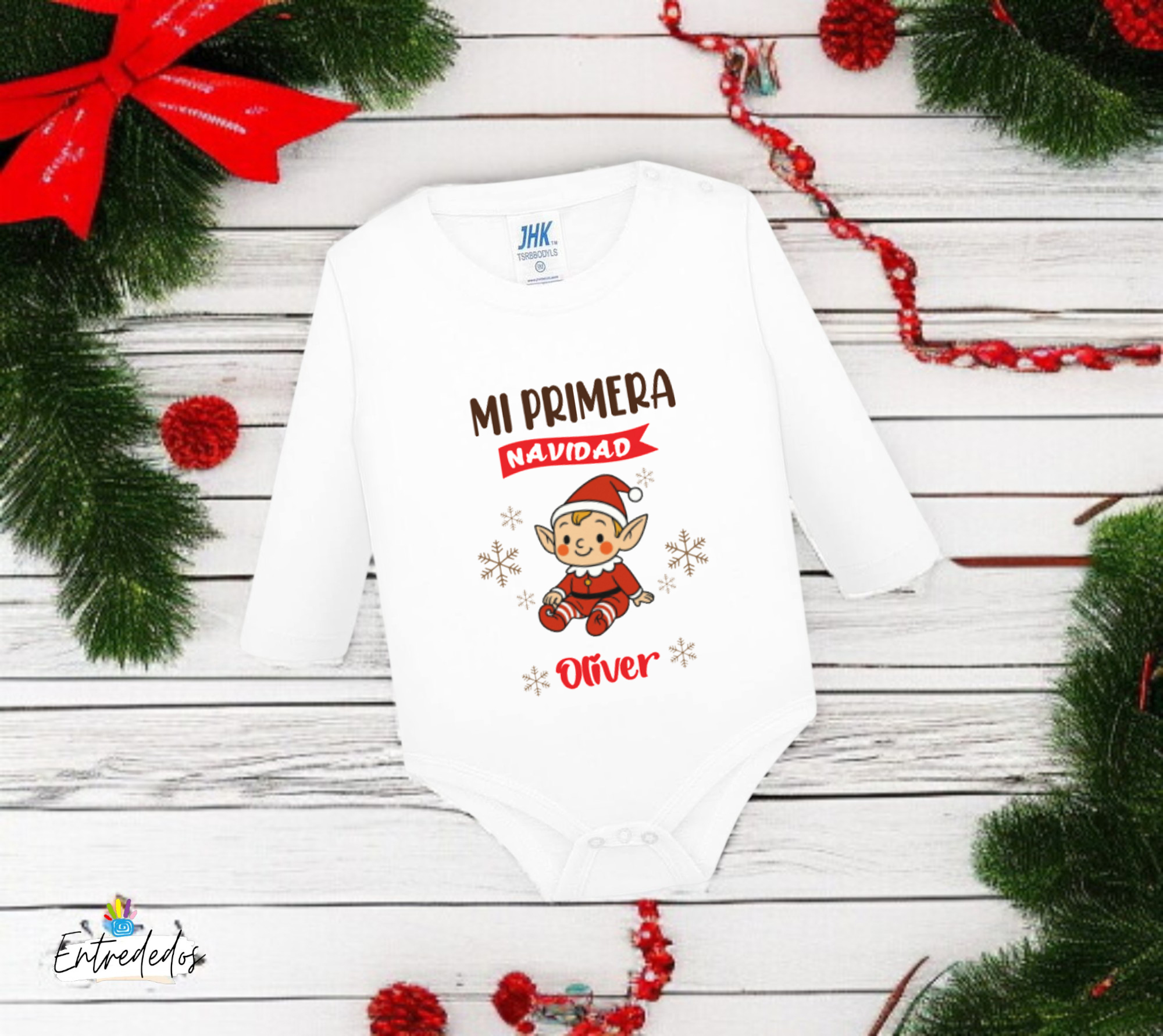 Celebra la magia de la primera Navidad de tu bebé con este precioso body personalizado. Es un regalo ideal para recién nacidos o bebés que vivirán su primera Navidad.