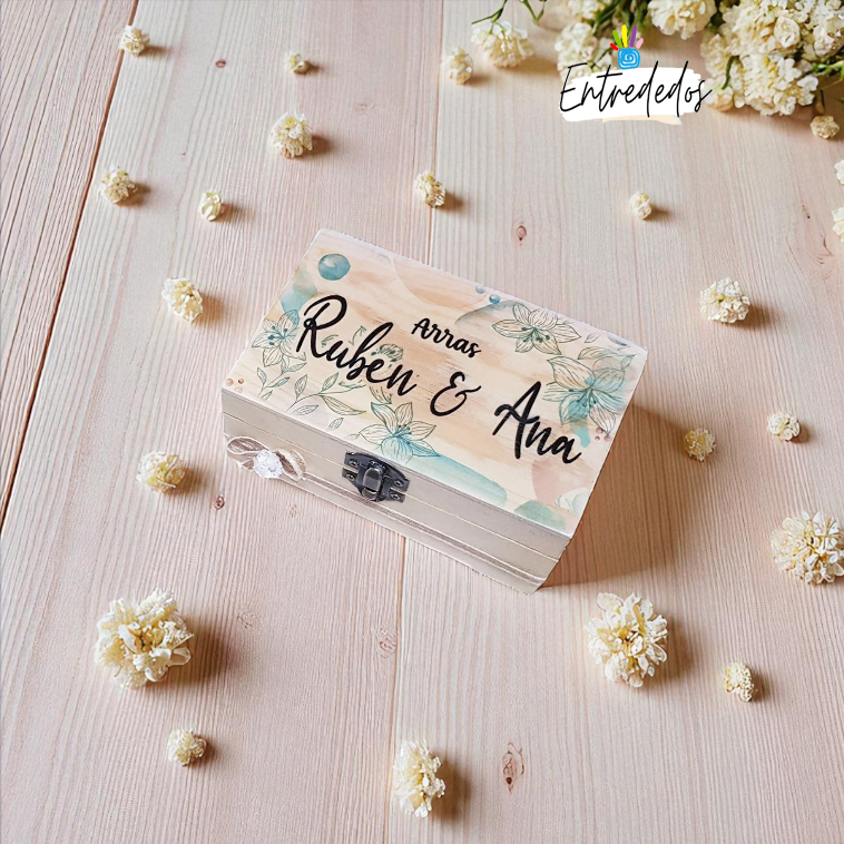 Caja Porta Arras Personalizada: Diseño Único FLOR VERDE