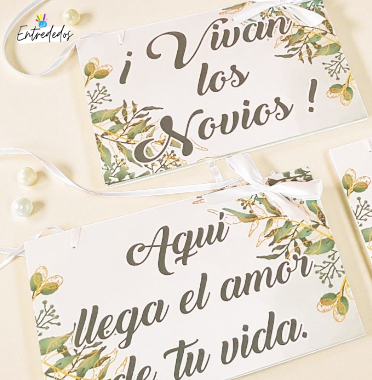 **Personalización Total:** Te ofrecemos la opción de personalizar el cartel con los nombres de los novios, la fecha del evento, o una frase especial que capture la esencia de su amor.
