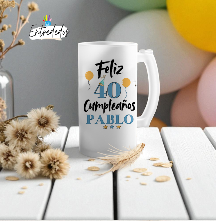 – **Personalización:** El nombre del cumpleañero se grabará con esmero en la jarra, convirtiéndola en un recuerdo único y especial.