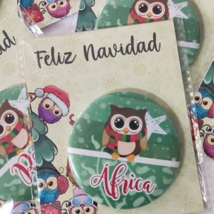 Chapa Espejo o Imán de Navidad – Diseño Búho 2.50€ IVA Incluido