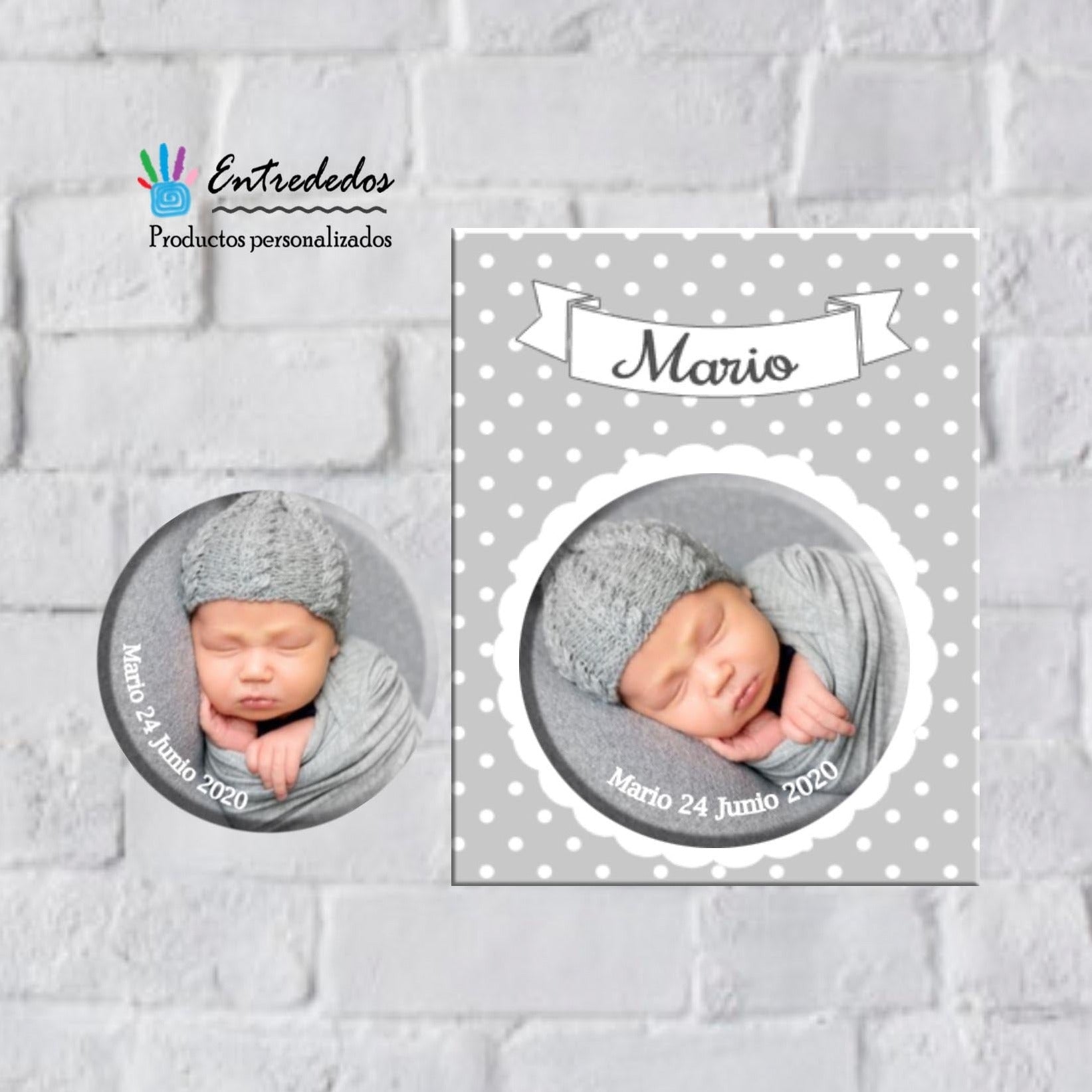 - EMPAQUETADO. Se entrega en una bonita cartulina personalizada a juego con la chapa para que te llegue a tu casa listo para entregar a tus invitado.
