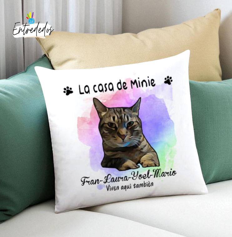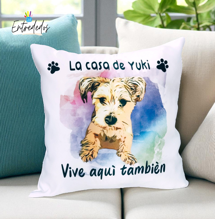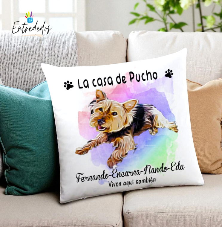 Imagina llegar a casa después de un largo día y encontrar un cojín que no solo embellece tu espacio, sino que también refleja el amor por tu mascota y tu familia. Un cojín personalizado con las fotos de tu querido compañero peludo, adornado con un hermoso diseño en dibujo y un fondo de acuarela, es más que un simple accesorio; es una expresión de cariño y memorias compartidas.