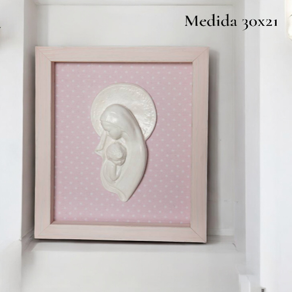 Cuadro El Tierno Abrazo de la Virgen María -Rosa/Topitos