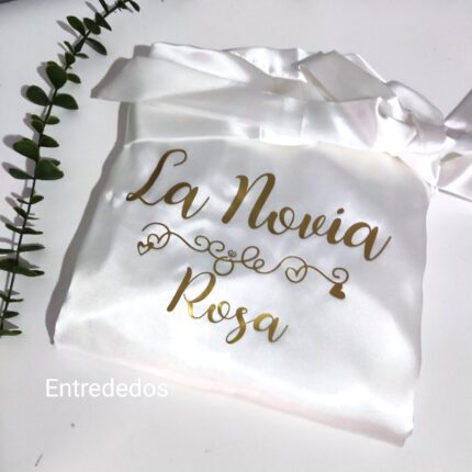 ✨ Bata de satén personalizada + zapatillas delicadas.