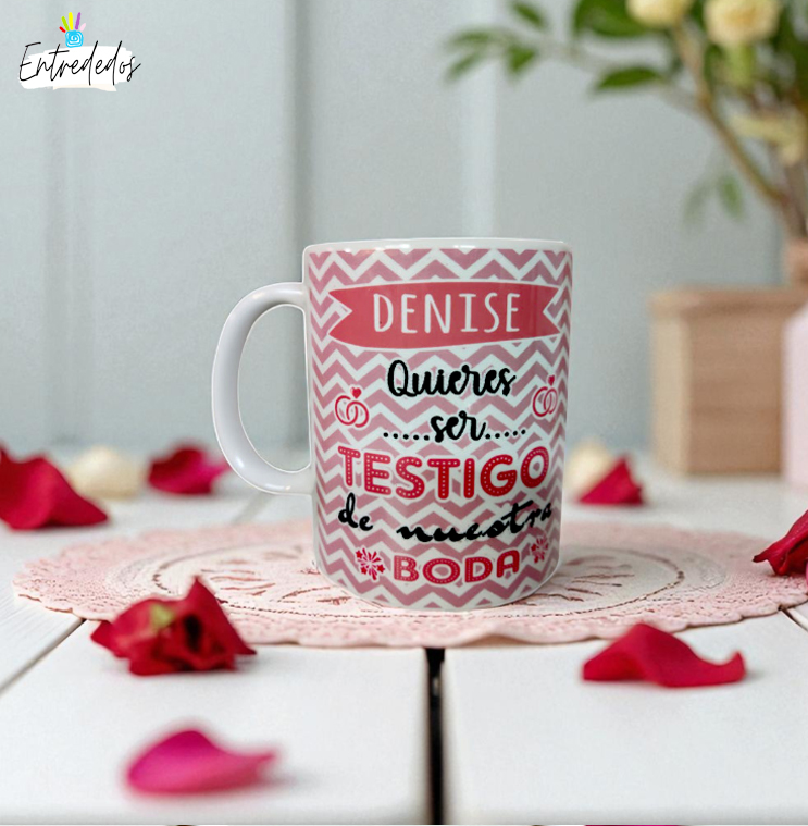 1. **Taza Personalizada**: Una taza elegante que puede llevar el nombre de tu testigo y un mensaje especial, perfecta para disfrutar de su bebida favorita.