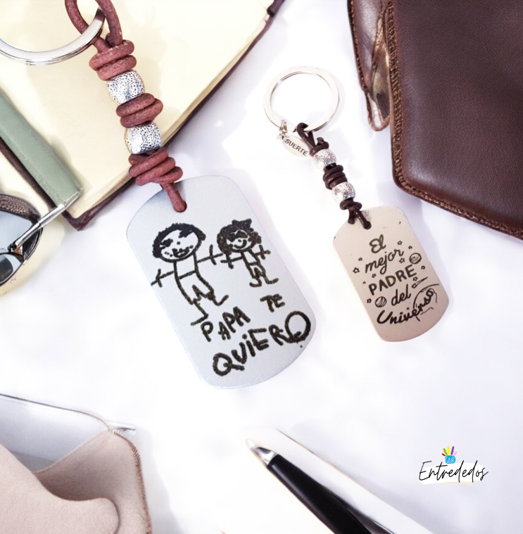 Este llavero de placa metálica en aluminio está impreso a dos caras, ideal para añadir una frase especial y el nombre de quien más quieras. Incluye cuerda de cuero sintético en color marrón y se entrega en cajita kraft, listo para regalar. 🎁