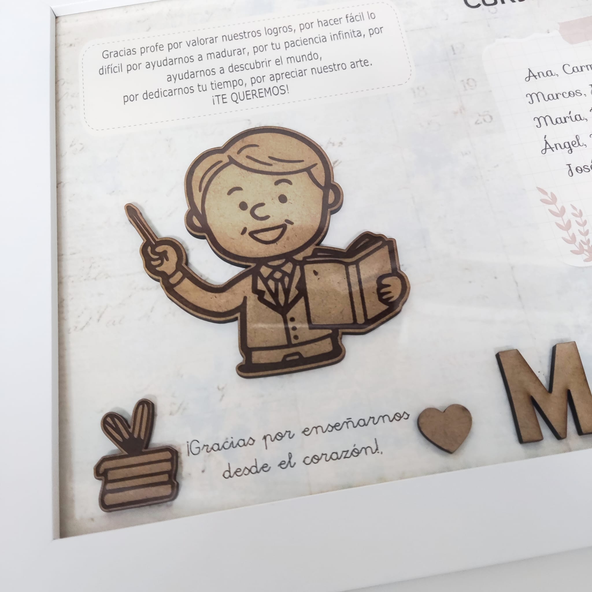 Sorprende a tu profesor o profesora con una lámina única y elegante, fabricada en MDF con grabado láser ✨. Un regalo especial y personalizado que se convertirá en un recuerdo inolvidable del curso 🎓.
