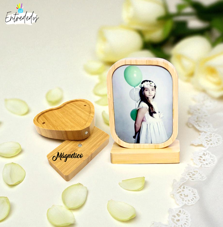 ¿Buscas un regalo original y funcional para cualquier ocasión? El **Marco de Bambú Giratorio y Magnético** es la elección ideal. Este elegante marco no solo destaca por su diseño atractivo, sino también por su innovador mecanismo que permite girar la fotografía con facilidad gracias a su imán integrado.