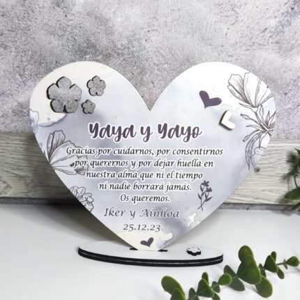 Fabricado en madera de alta calidad, incluye una lámina personalizada que puedes adaptar con nombres, fecha y fotografía, creando un regalo personal y significativo.