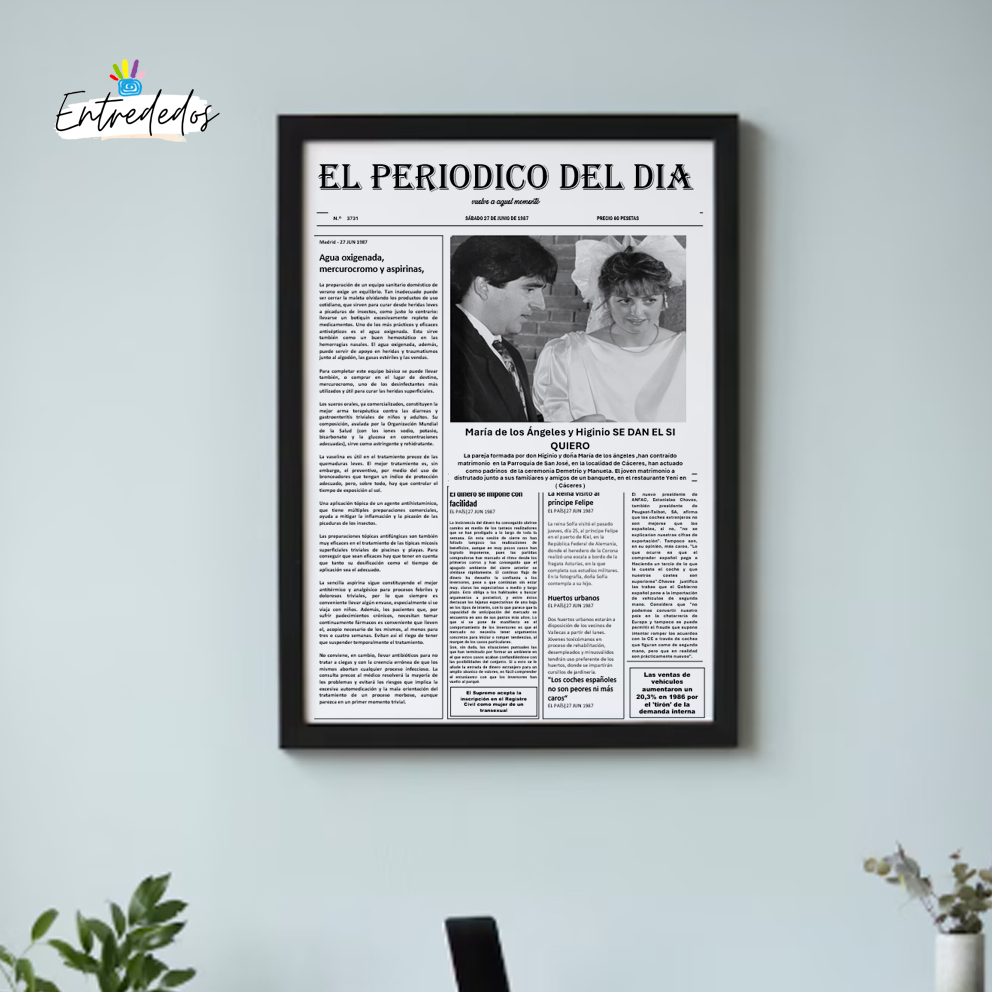 Marco y Lámina Personalizada el Periódico Del Día