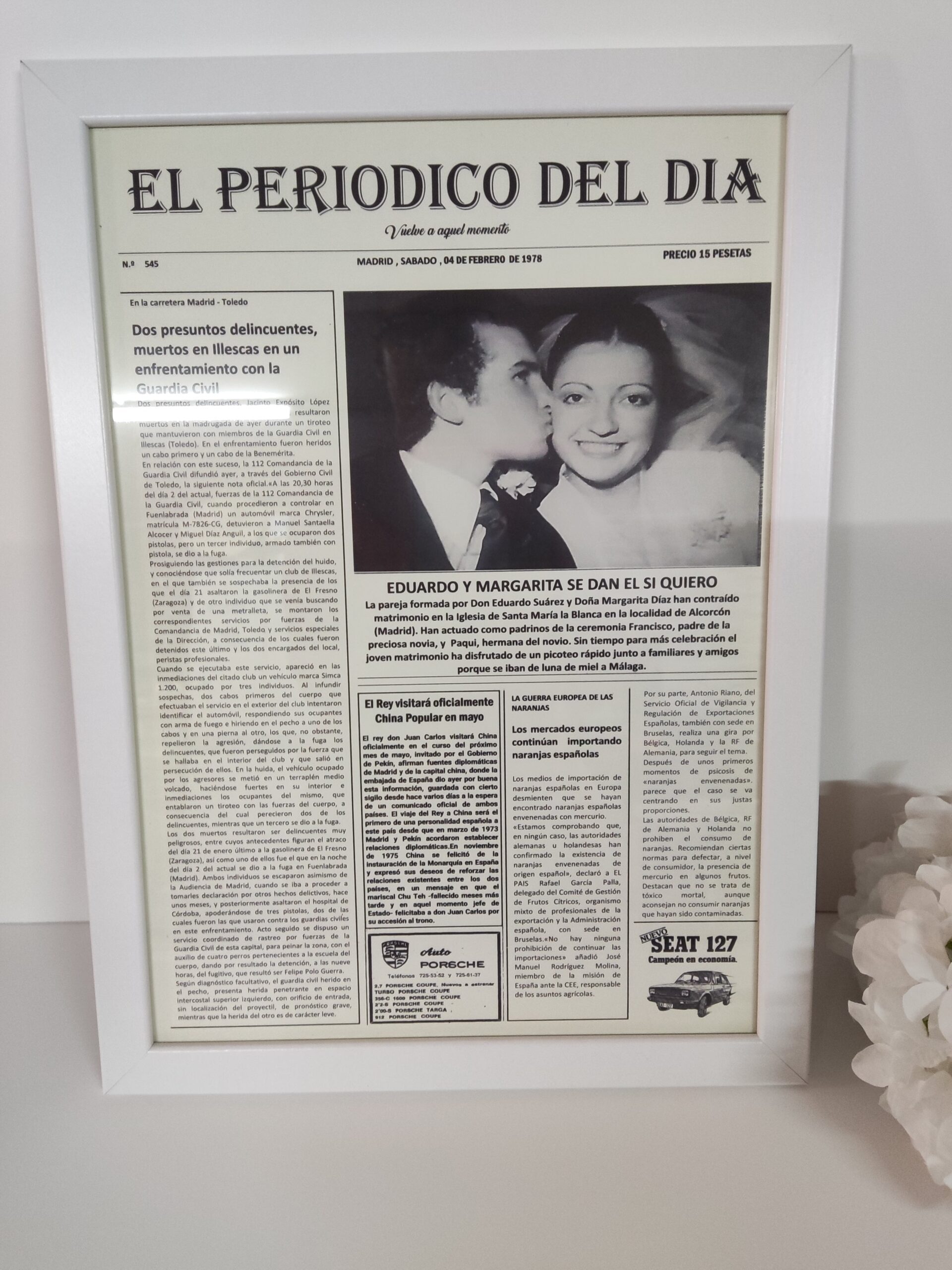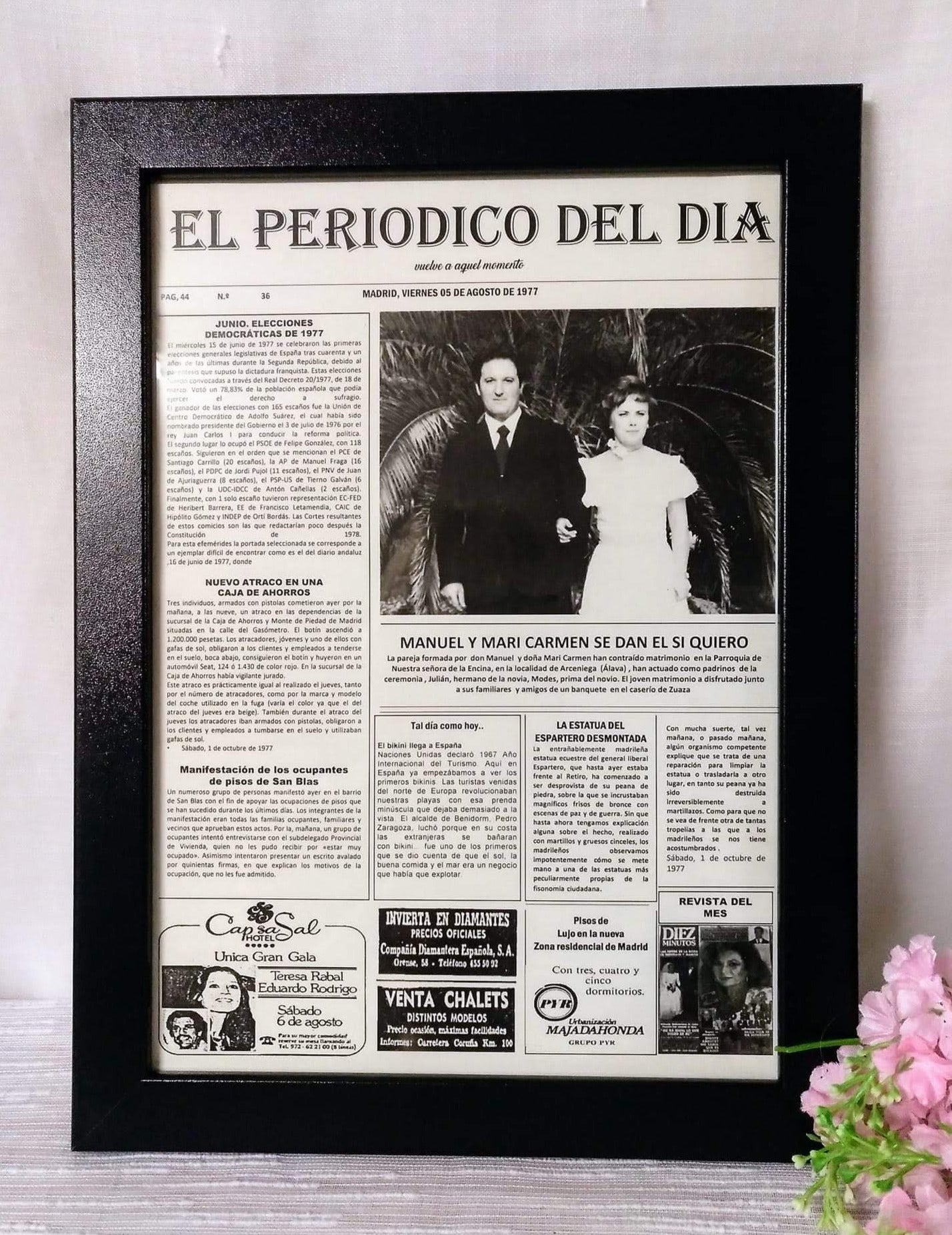 Los periódicos personalizados se pueden realizar con fecha desde 1976, ¡así que no dudes en seleccionar la fecha que haga este regalo aún más especial!