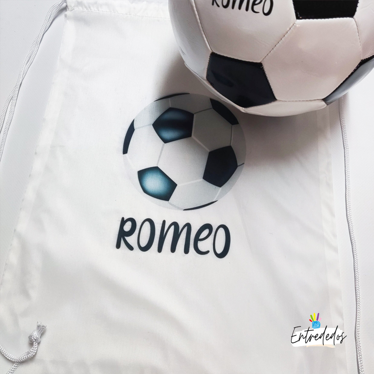⚽ Diseño exclusivo: cada mochila se personaliza con el nombre del niño junto al dibujo del balón.