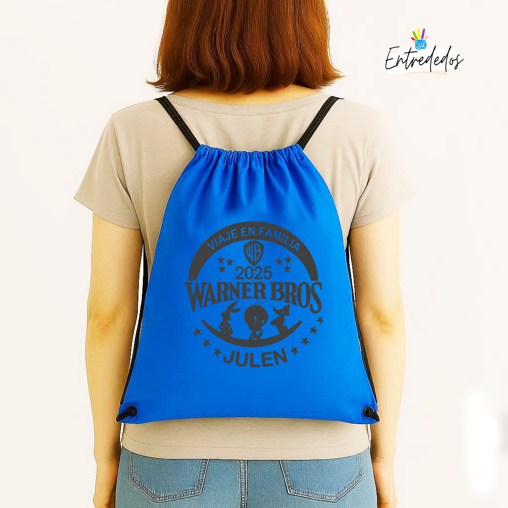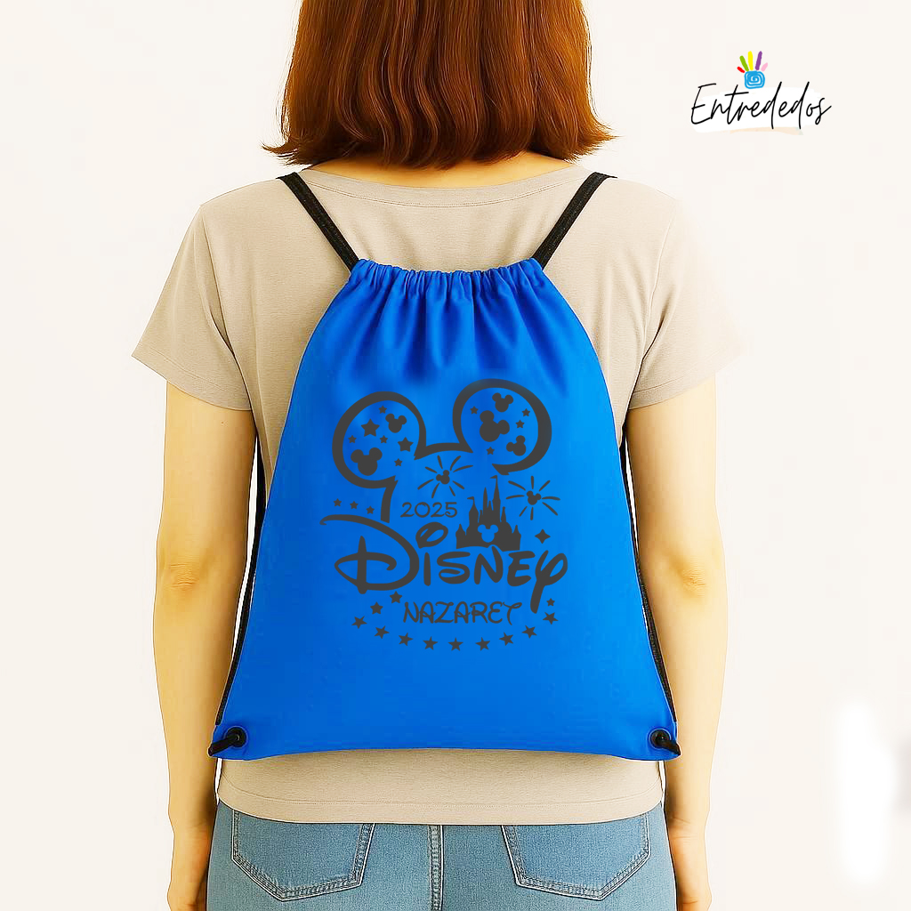 Mochila de Tela con Cuerdas Negras para Viajes a tu Parque Temático