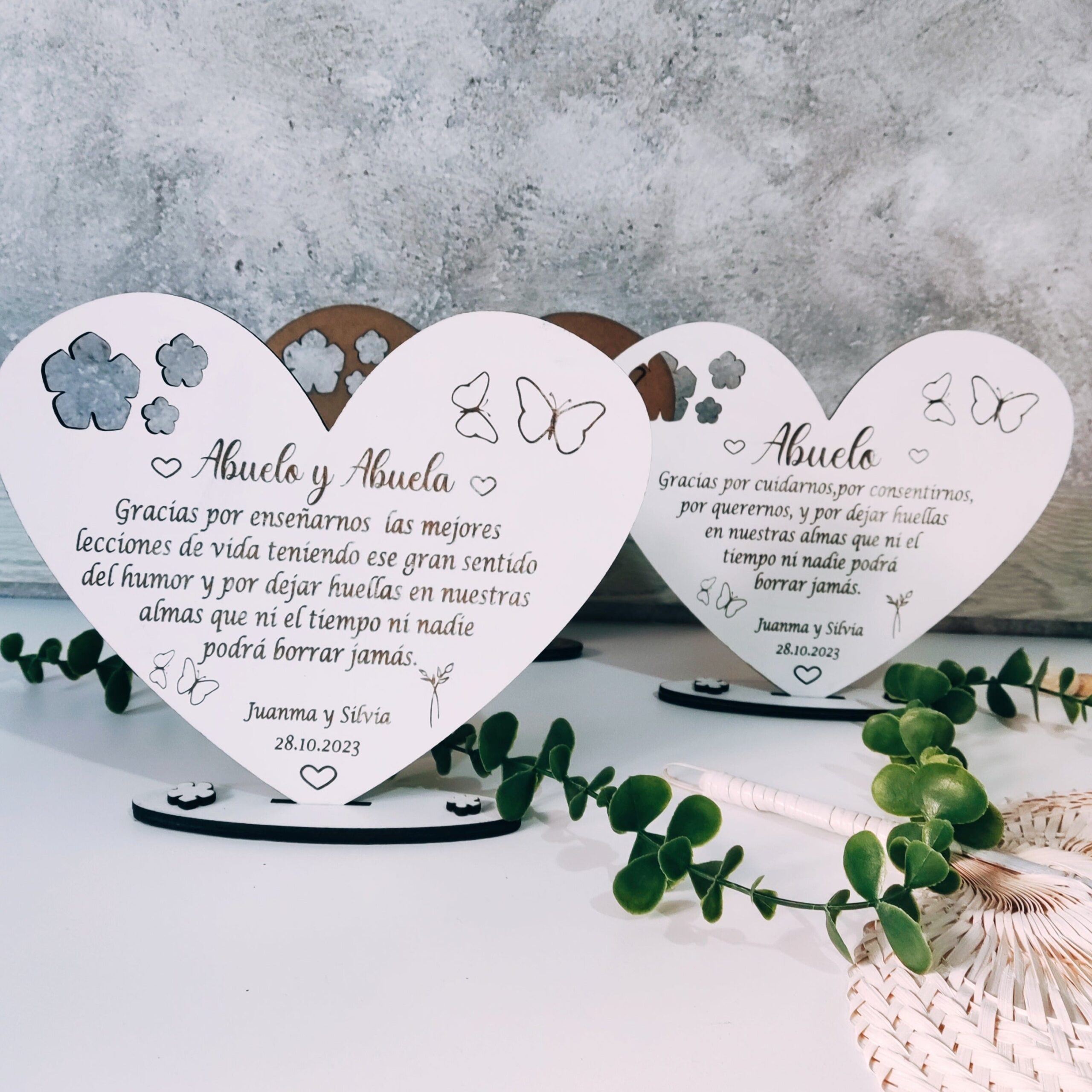 Si buscas un regalo especial y emotivo para tus abuelos, madre o cualquier ser querido, este detalle personalizado en madera es la elección perfecta. Elegante, delicado y lleno de significado, este regalo demuestra cuánto aprecias a esa persona especial en tu vida.