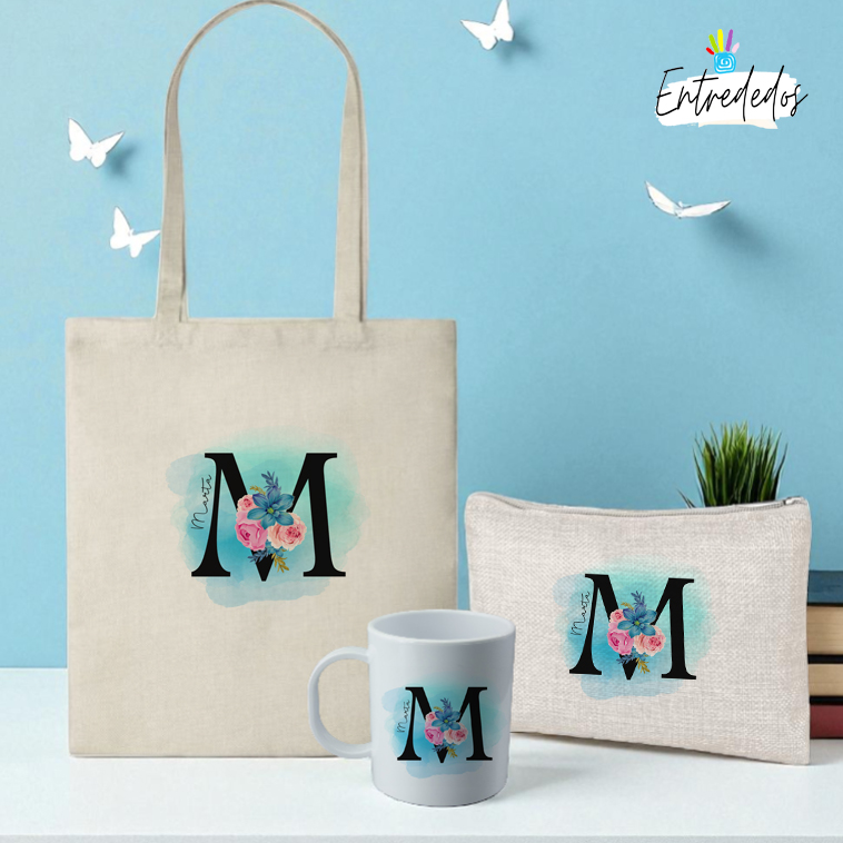 Regalos únicos: kit mujer con inicial y flores encantadoras