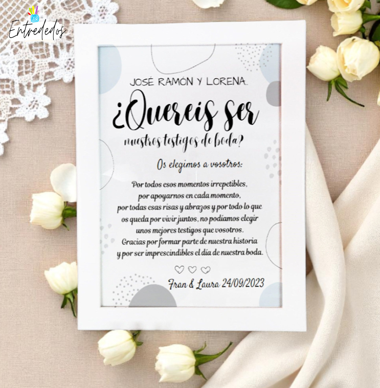 – Diseña una hermosa lámina que contenga la definición de “testigo” en un formato atractivo y decorativo. Puedes incluir elementos gráficos como flores, corazones o cualquier otro diseño que refleje la temática de tu boda.