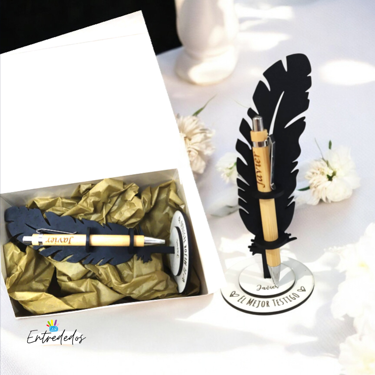 Soporte para Bolígrafo Personalizado en Madera con Pluma