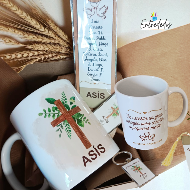 Demuestra tu agradecimiento a los catequistas con un detalle original y significativo, perfecto para reconocer su dedicación y esfuerzo en la enseñanza. Un regalo que combina utilidad y un toque personal que será recordado con cariño.