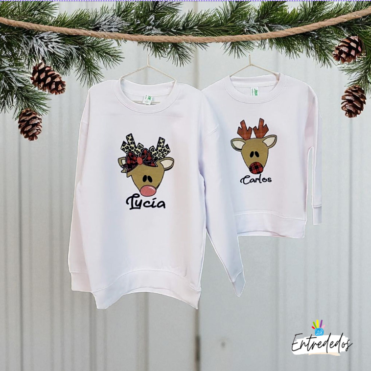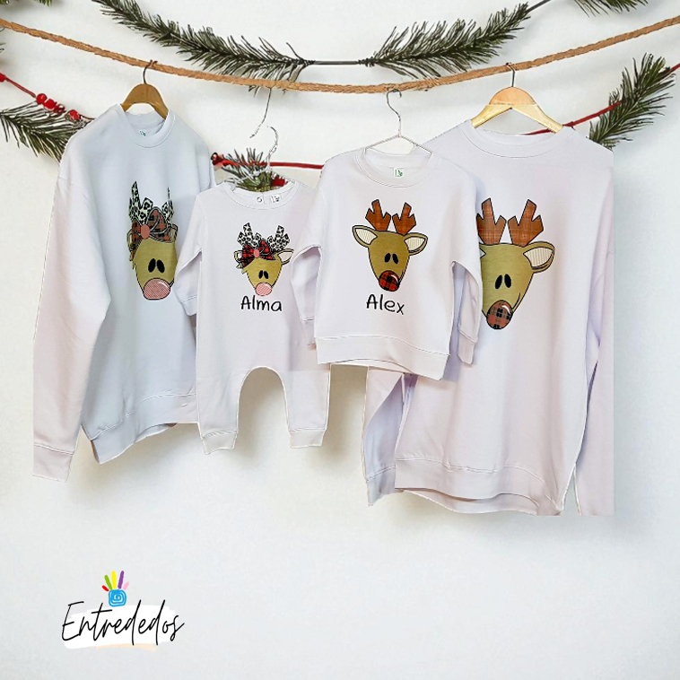 La Navidad es una época mágica que se caracteriza por la unión familiar, la alegría y la tradición. En este contexto, las sudaderas navideñas personalizadas con el nombre están ganando popularidad como una opción de regalo original y entrañable. Estas prendas no solo ofrecen comodidad y estilo, sino que también permiten expresar la individualidad y el cariño hacia nuestros seres queridos. Disponibles en variedad de colores con un bonito diseño navideño en el delantero (se personalizan  con el nombre de cada miembro de la familia).Sudadera en color rojo con un bonito reno navideño en el delantero (posibilidad de personalizarlas con el nombre de cada miembro de la familia).