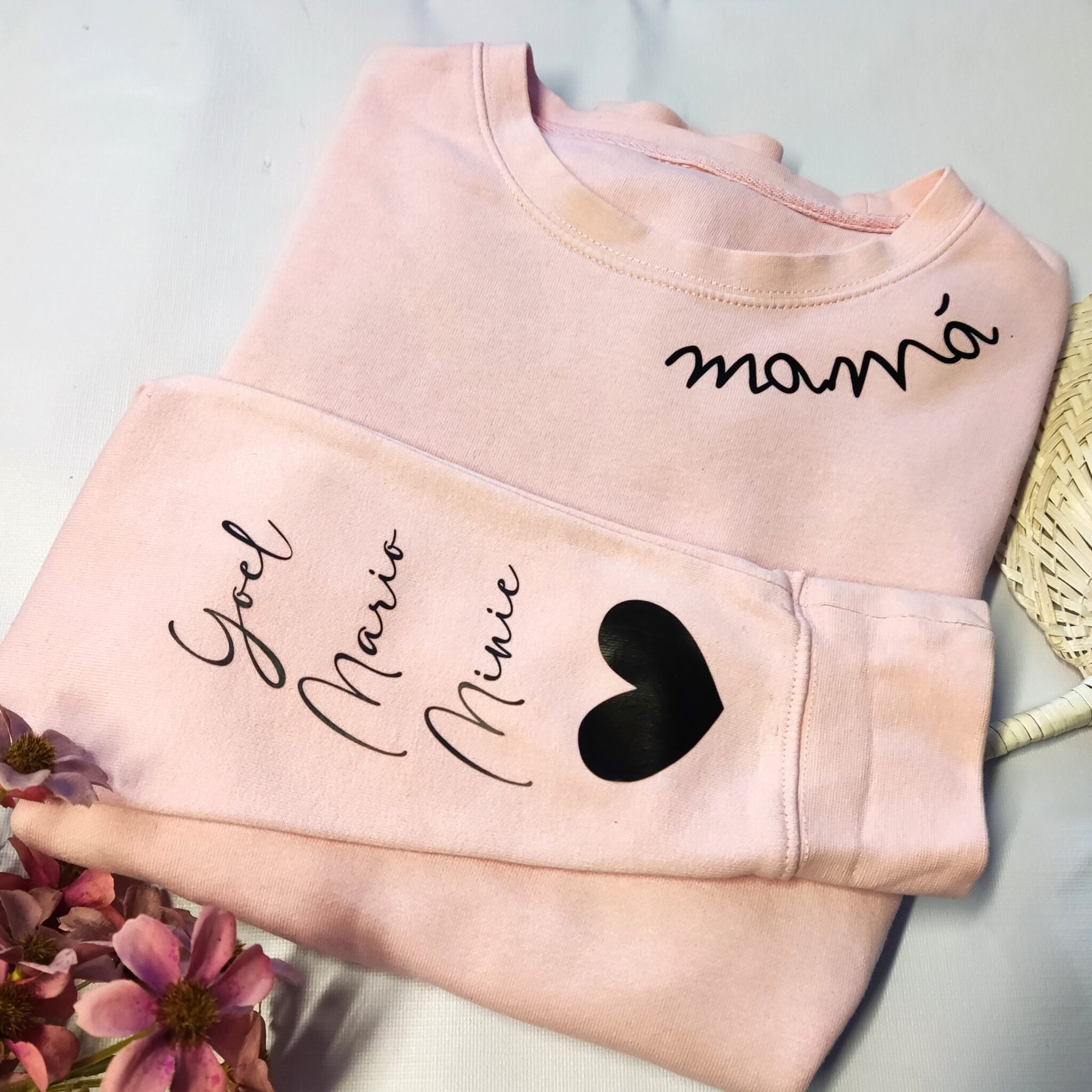 Celebra el amor familiar con una sudadera única y especial. Personalízala con los nombres de tus peques o mascotas y crea un diseño exclusivo que siempre llevarás cerca del corazón.