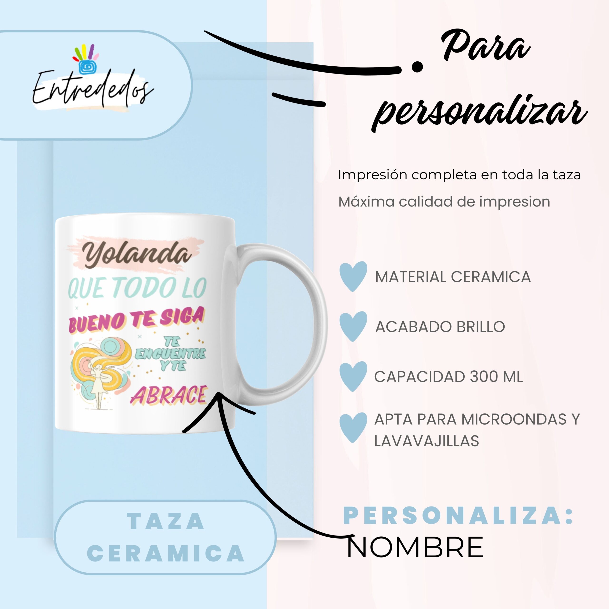 Taza de 300 ml personalizada con nombre, perfecta para regalar o disfrutar cada día.