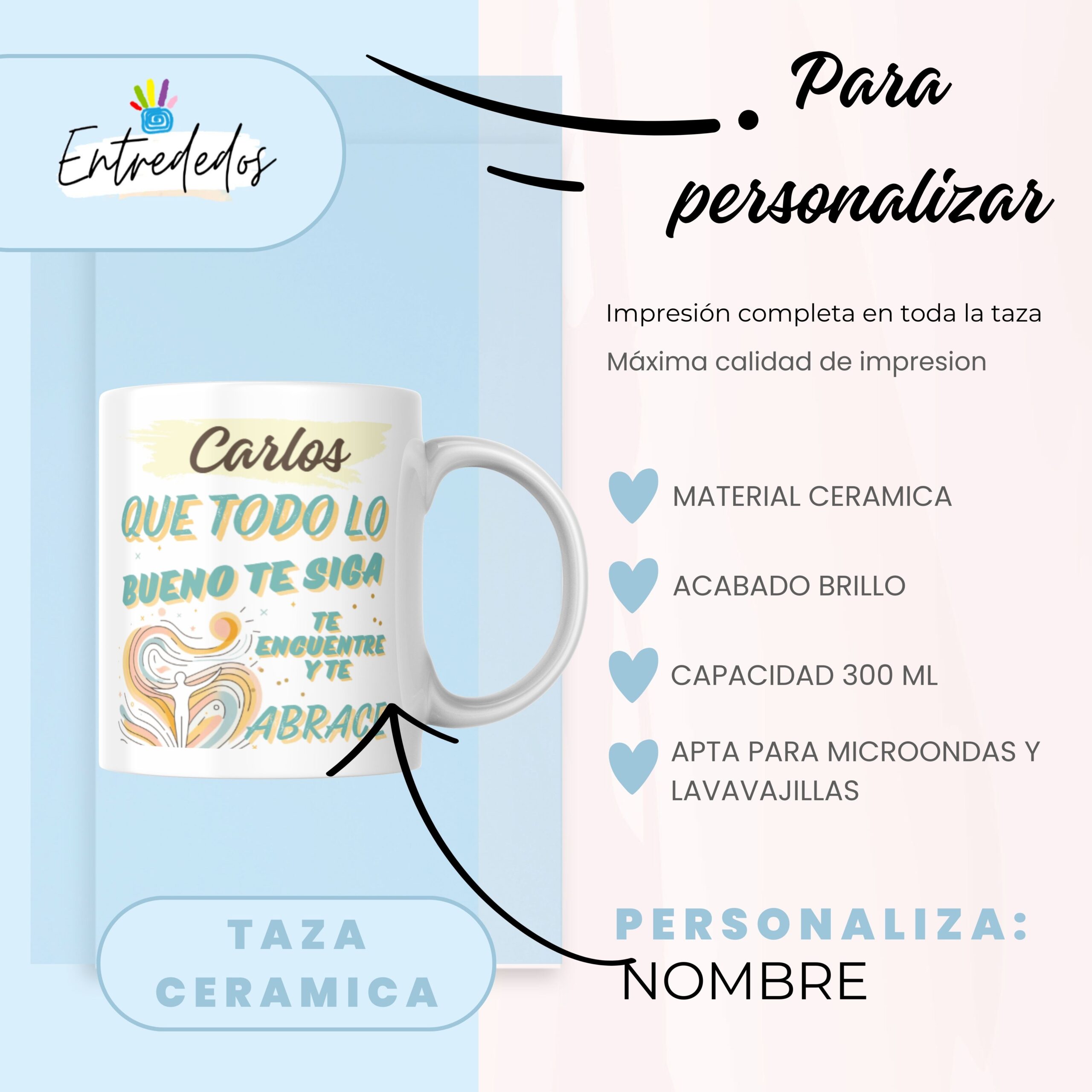 Taza de 300 ml personalizada con nombre, perfecta para regalar o disfrutar cada día.
