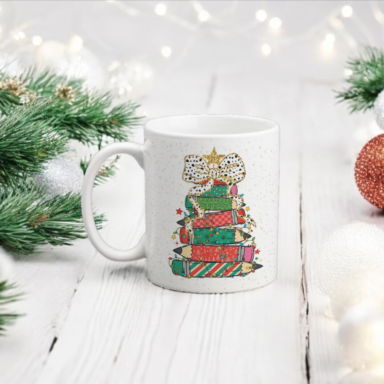 Taza Personalizada para Profesora – Navidad Diseño Árbol de Lapiceros