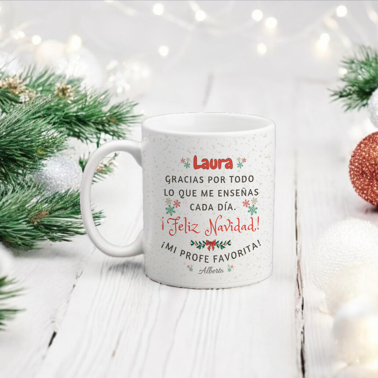 “Gracias por todo lo que me enseñas cada día. ¡Feliz Navidad, mi profe favorita!” ✨ Personalízala con el nombre del alumno y el nombre de la profesora para convertirla en un recuerdo único y especial