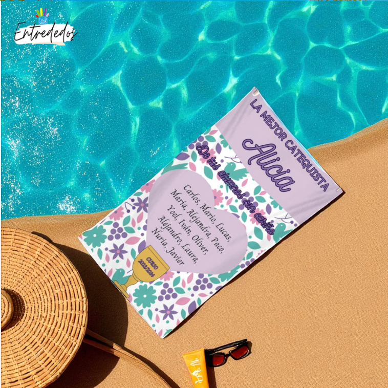 Presume de toallas originales y personalizadas en la playa o piscina con nuestras exclusivas opciones de personalización. Estas toallas no solo son prácticas, sino que también destacan por su diseño único y totalmente adaptado a tus preferencias.